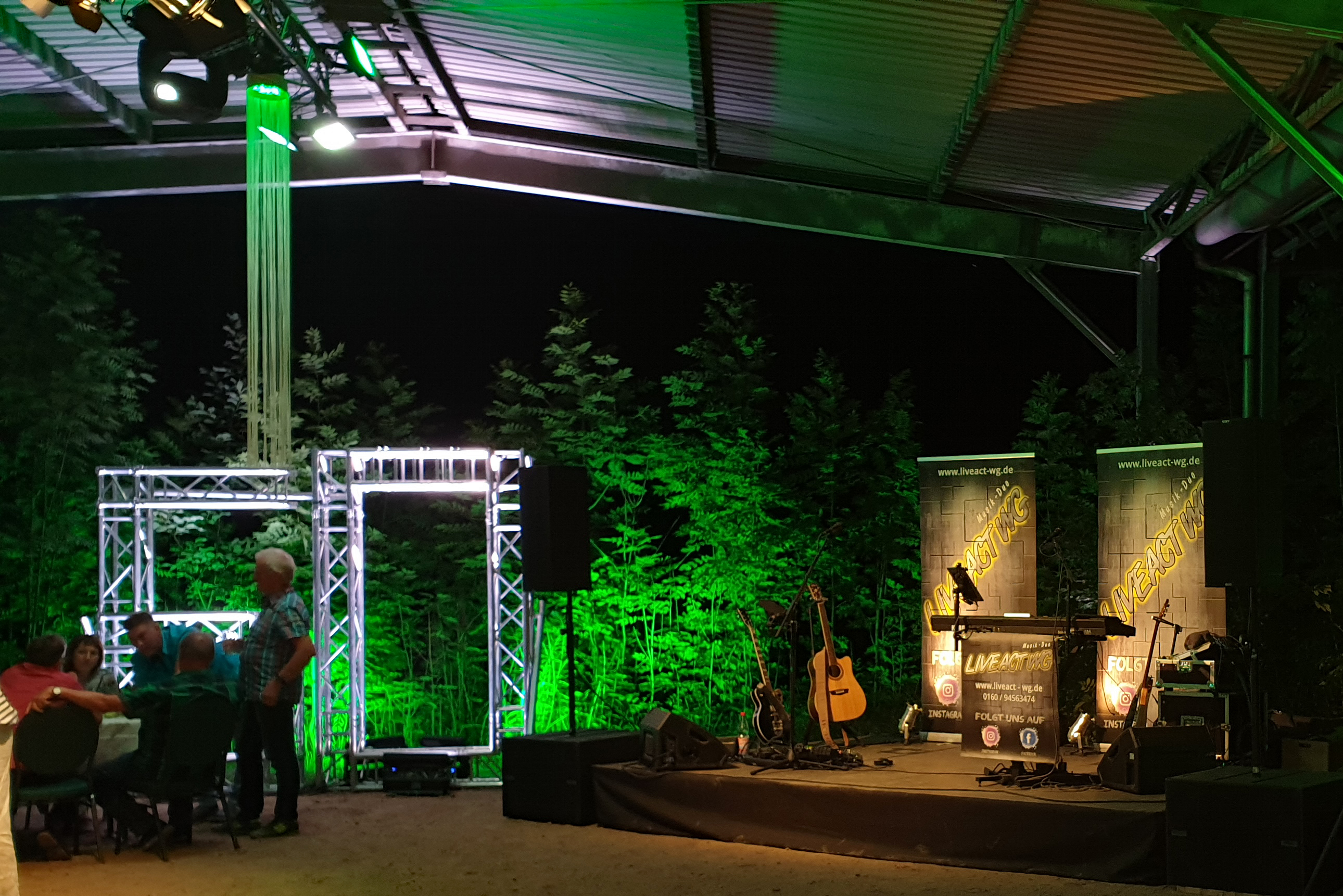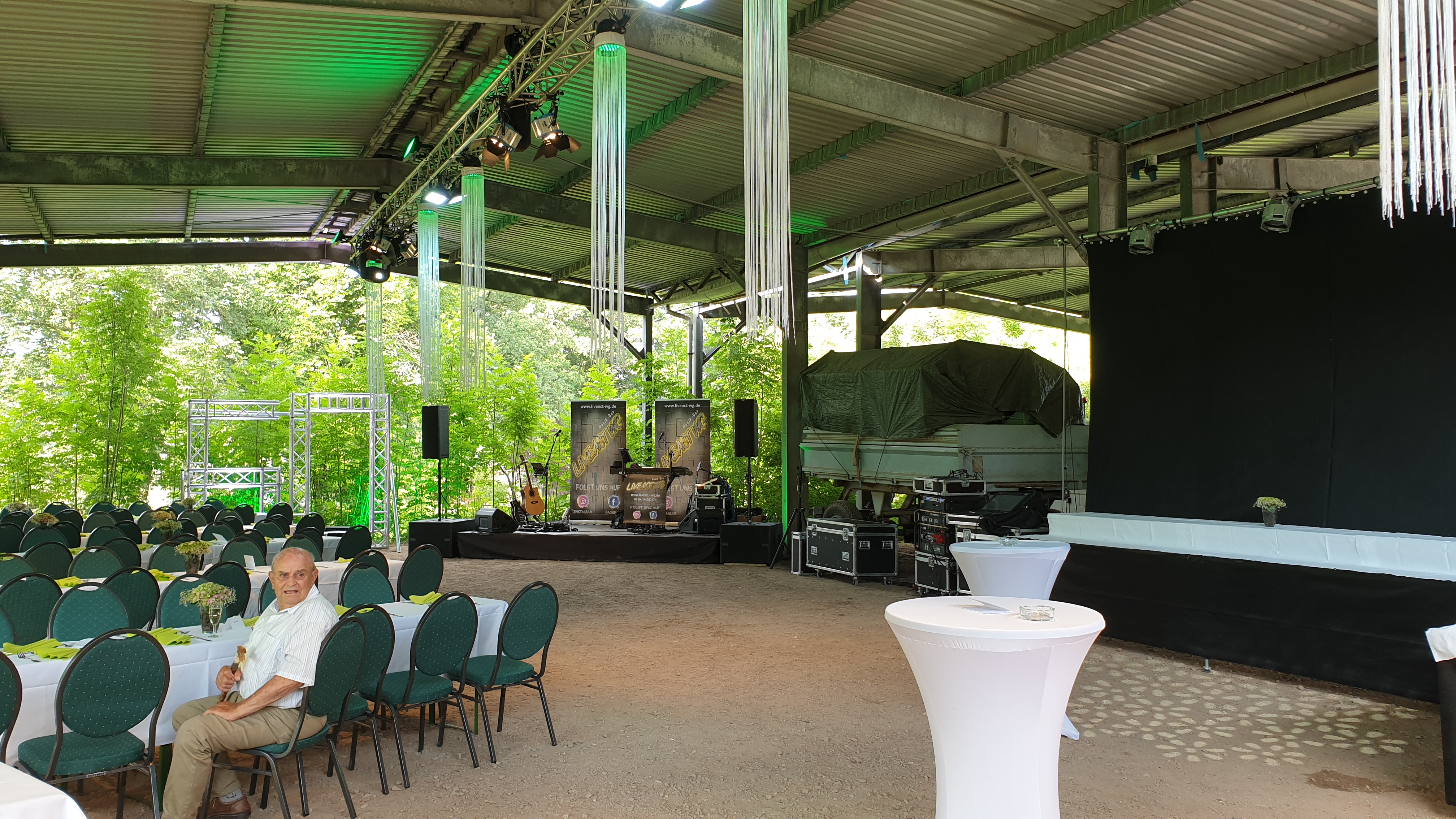 Schon am Vorabend wurde alles aufgebaut und für uns zwei, die für die Party- und Tanzmusik am Abend engagiert waren, eine schöne Bühne und eine Tonanlage mit Monitoren gestellt. Zum Einsatz kamen wieder die Ingenia IG3T Topteile und die VIO 118 Subs. Wir geben zu, wir sind ein bisschen verliebt in dieses System 😉 Mega Sound 😀