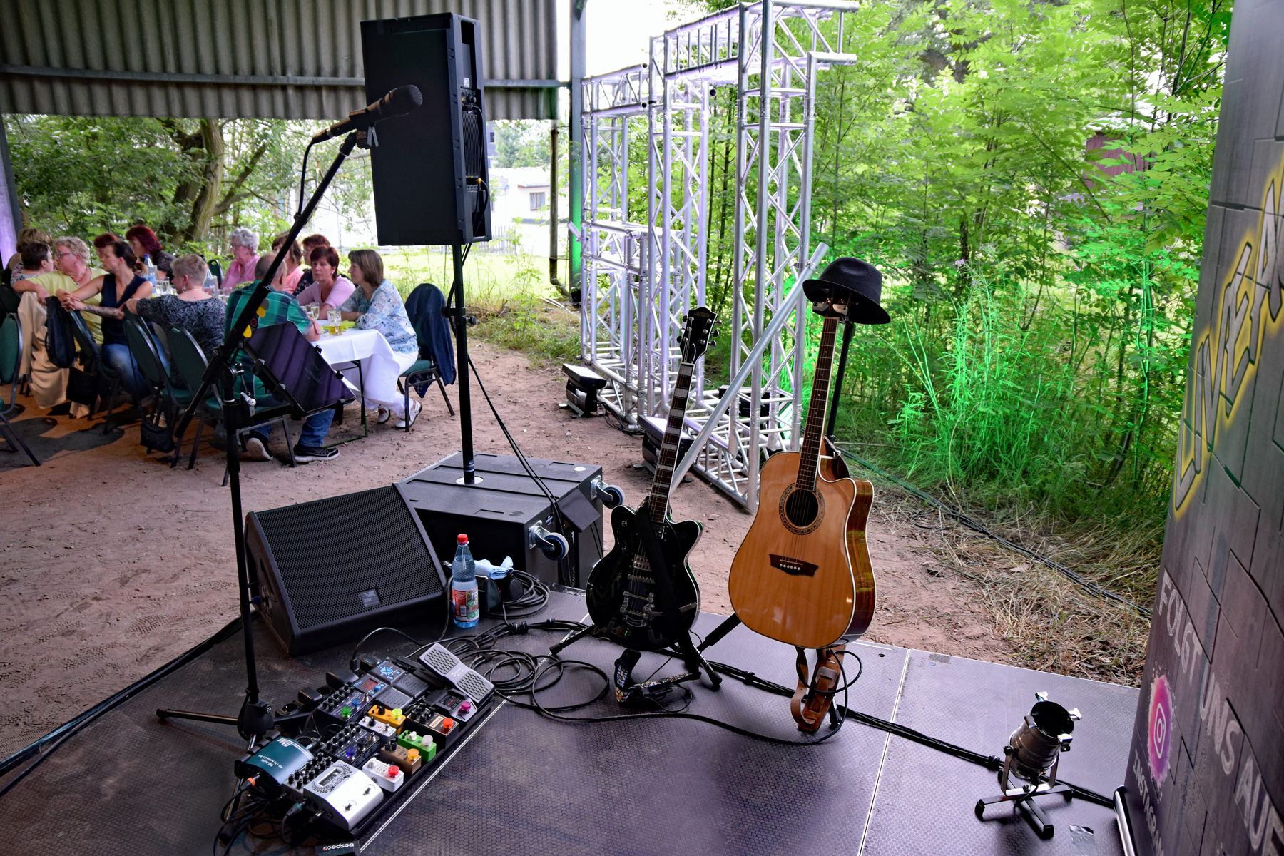 Wir haben uns dann am frühen Nachmittag mit unseren Instrumenten und Mischpult auf den Weg nach Olbernhau OT Blumenau gemacht. Es sollte ja schließlich vor dem Eintreffen der Gäste um 18 Uhr alles stehen und soundgecheckt sein. Beim Eintreffen gegen 16:30 Uhr war, wie immer, alles perfekt für uns vorbereitet und wir konnten kurzerhand mit dem Aufbau beginnen und schnell Soundchecken.