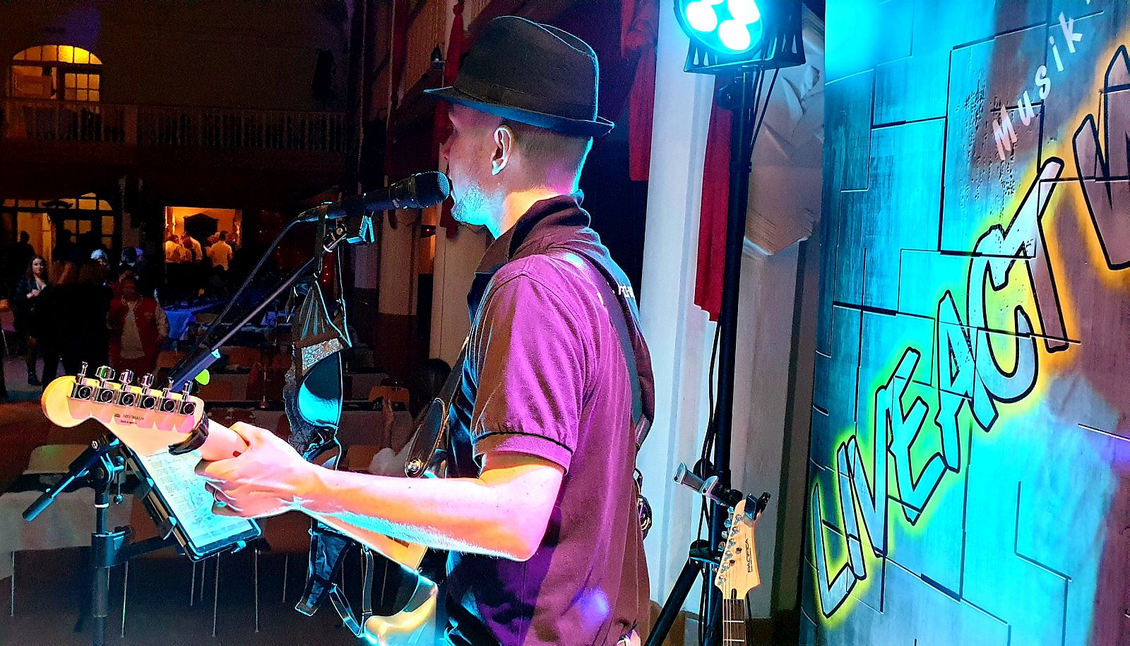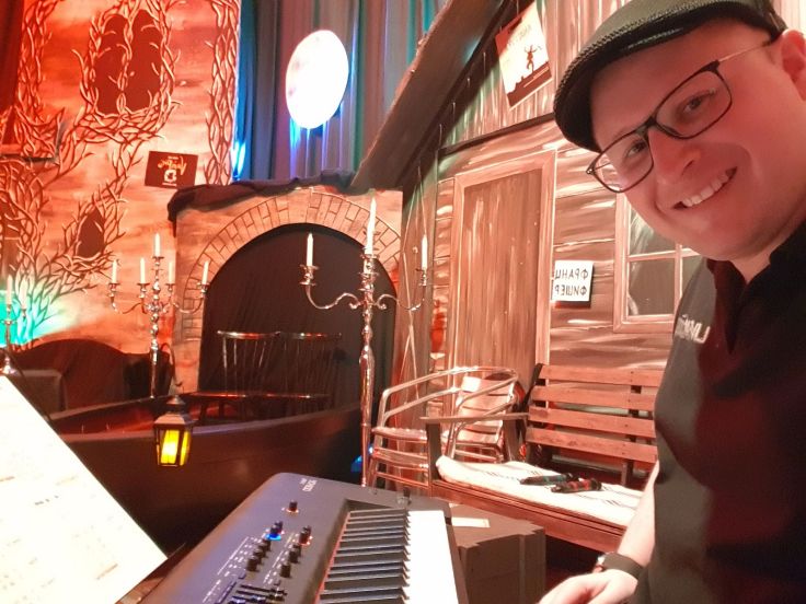 Aufbau und Soundcheck erfolgte nicht, wie in den Vorjahren, am Freitag vor der 1. Prunksitzung, sondern schon am Donnerstag. Und Alex war diesmal von Anfang an mit eingespannt, denn er durfte mit dem Rehauer Chor „NewVoices“ des Gesangsvereins 1848 Rehau – unter der Leitung von Christel Scholz-Engel, die Prunksitzungen mit einem Musical Medley eröffnen. Er hatte somit den ersten Ton um 19:30 Uhr und den letzten Ton um 04:00 Uhr Morgens inne. Es war also eine laaaaange Veranstaltung für ihn. Aber man macht es ja auch gerne 😀 Musik machen ist doch schon was Feines 😀