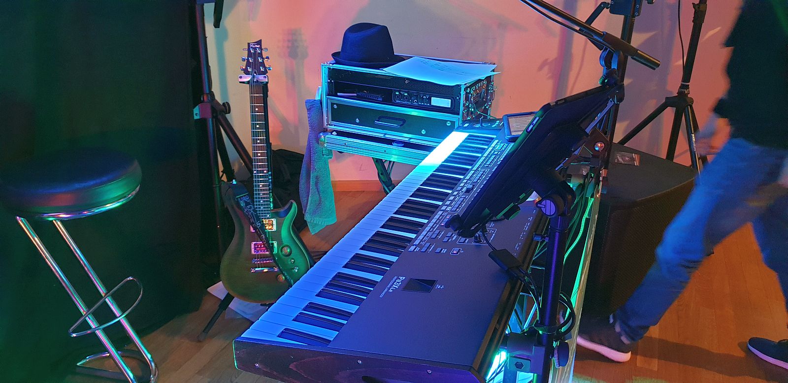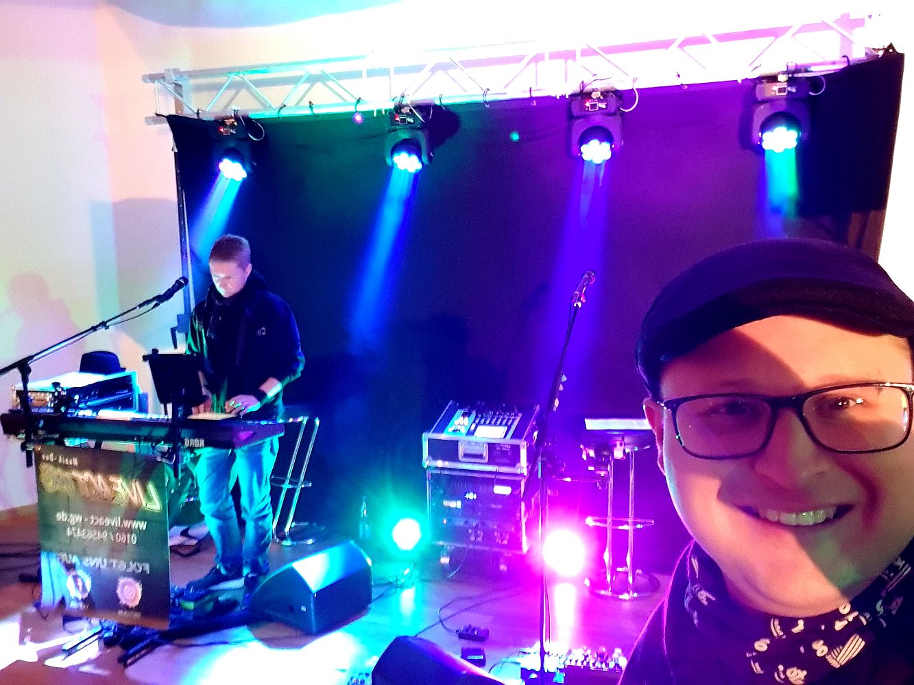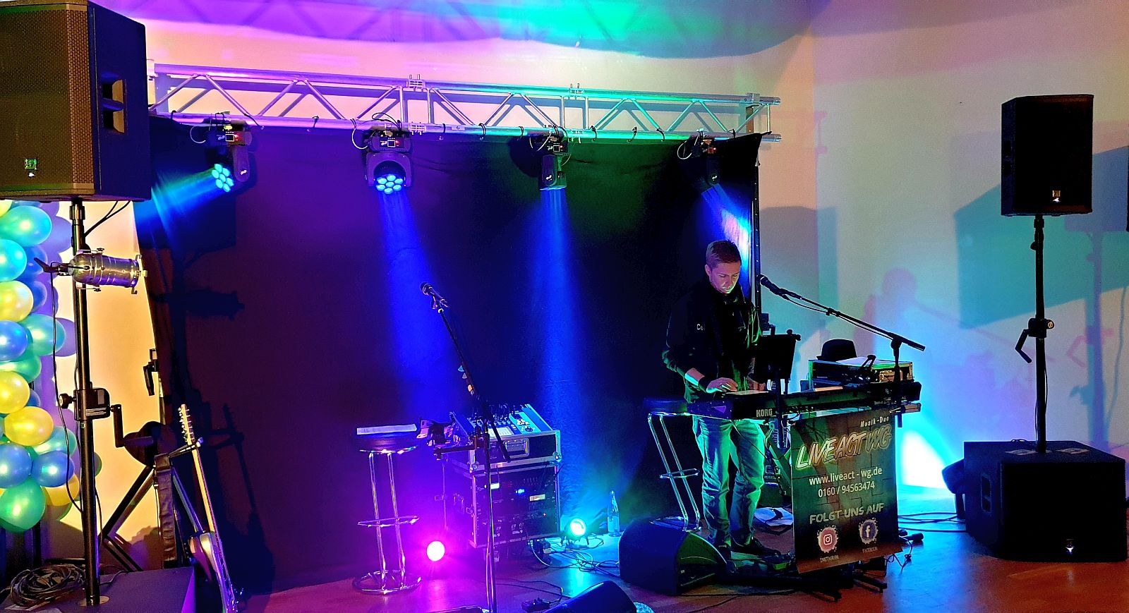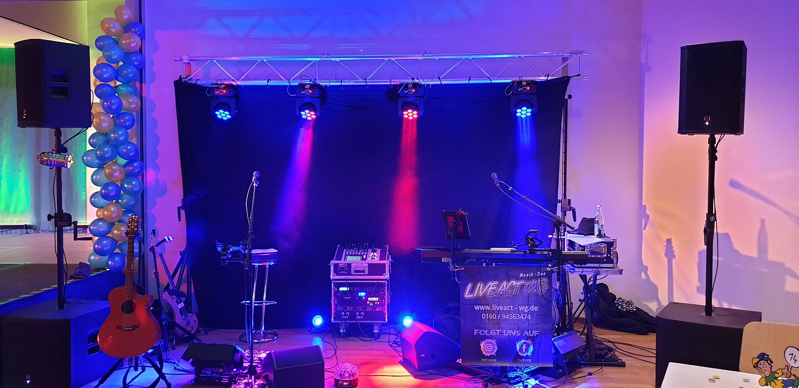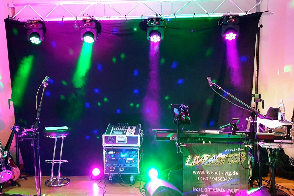 Für eine schöne Optik haben wir unsere Traverse mit Vorhang und unseren 4 neuen Beam Movingheads Etec 7QMK II bestückt. Die übrige Licht- und Tontechnik, sowie unsere Intrumente waren schnell einsatzbereit. Da wir ja aus dem letzten Jahr noch wissen, dass es nach dem offiziellen Teil gerne etwas wilder zugehen darf, haben wir natürlich unsere große PA eingepackt, aus 2 x EV EKX 18SP und 2 x EV ETX 12P, so dass zu später Stunde ordentlich Rabatz möglich war 😎🤩 6,6 kW machen schon bisschen Spaß 🥳