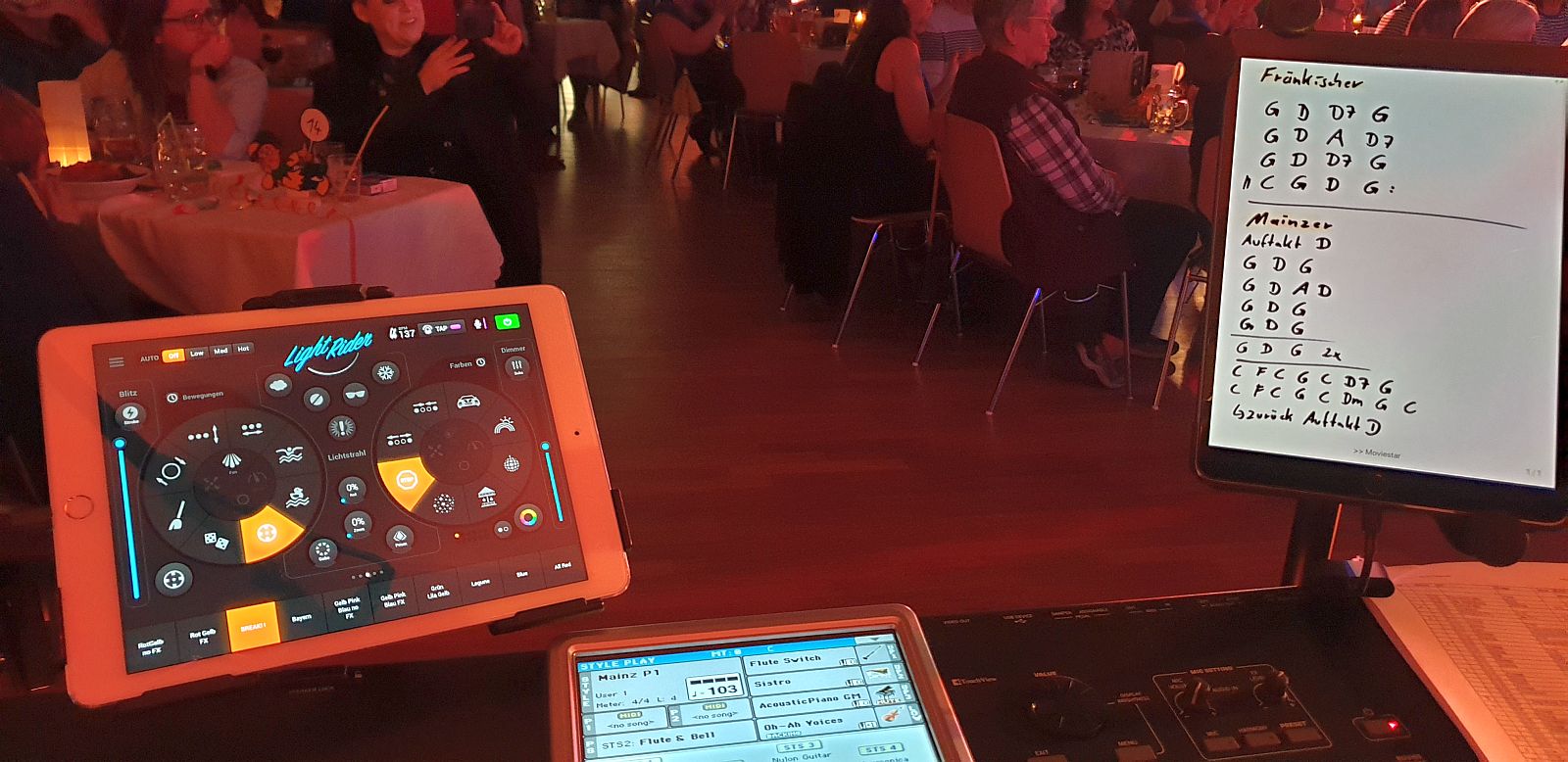 Wir begleiten das komplette Programm mit Einmärschen, Tusch und dem ein oder anderen Happy Birthday. Das macht wirklich viel Spaß – fordert aber auch viel Konzentration und Fingerspitzengefühl. Aber da scheinen wir ein ganz gutes Händchen zu haben, zumindest beschwert sich niemand😂 Und nicht geschimpft ist ja bekanntlich gut gelobt 😉 Spaß bei Seite, wir freuen uns wirklich das unsere Arbeit so gut ankommt und mit uns bis zum Schluss noch amtlich gefeiert und getanzt wird!