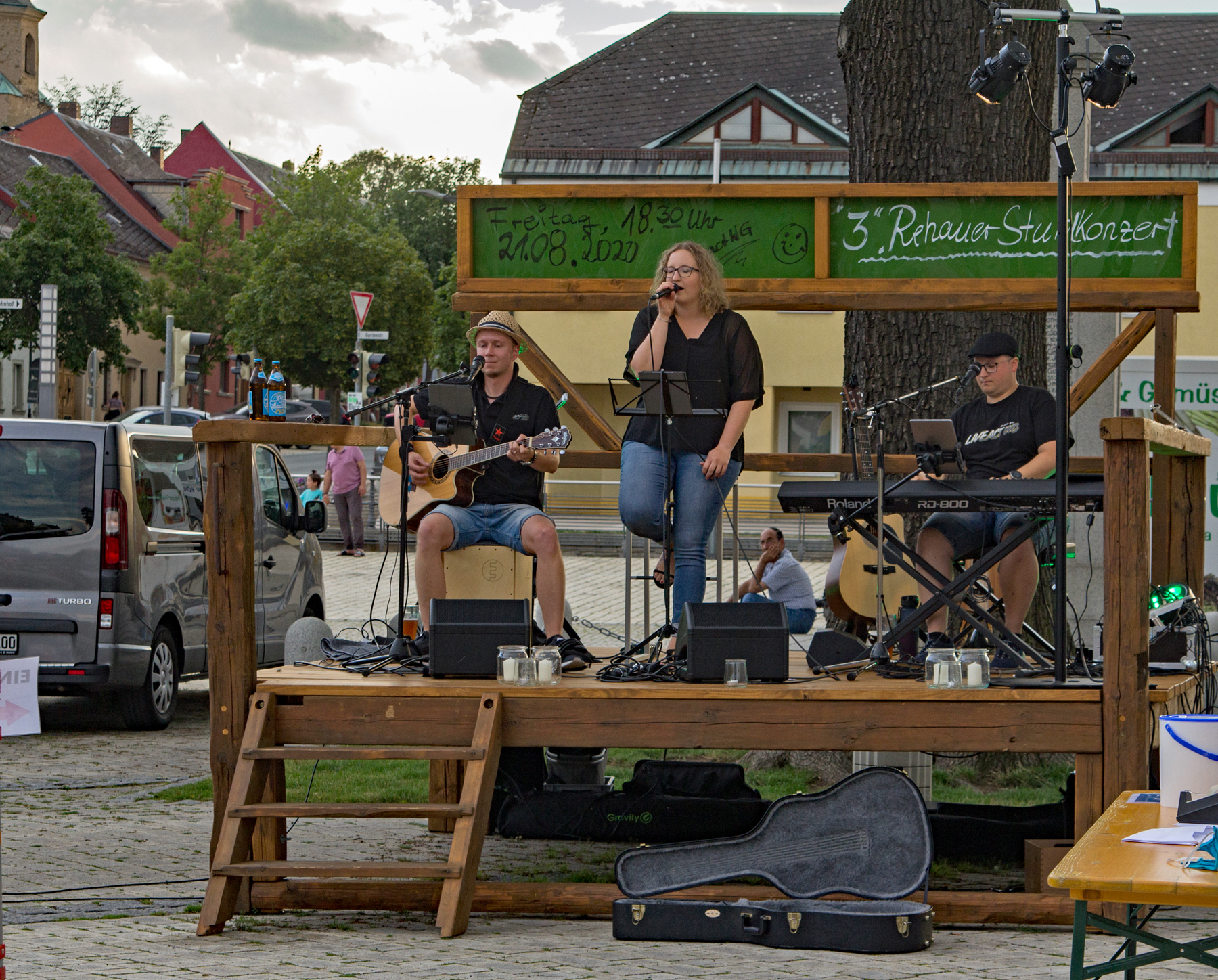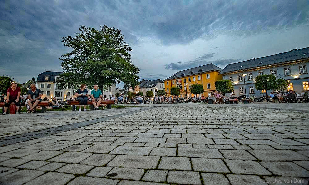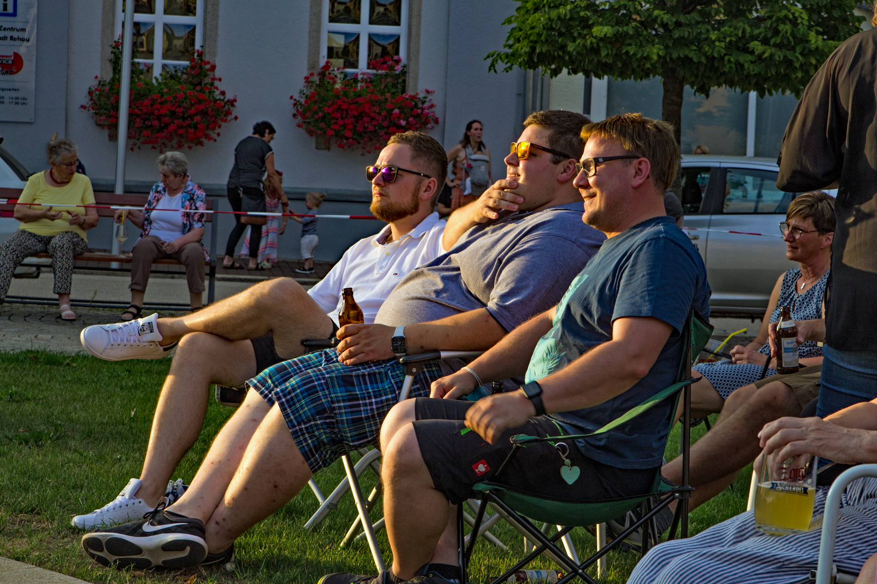 Eine Konzertreihe auf der Künstler eine schicke kleine Bühne mitten in Rehau bekommen. Direkt auf dem wunderschönen Maxplatz, bringen Besucher ihre Sitzgelegenheiten mit und lauschen in schöner Sommernachtskulisse verschiedenen Konzerten oder Vorlesungen. Großes Lob an die Stadt – wirklich eine Klasse Idee und eine hervorragende Umsetzung! Selbstverständlich wurde auch das Leibliche Wohl nicht vernachlässigt, so haben die umliegenden Gastronomen vom El Gusto und dem Früchtla die Bewirtung des Maxplatzes übernommen.