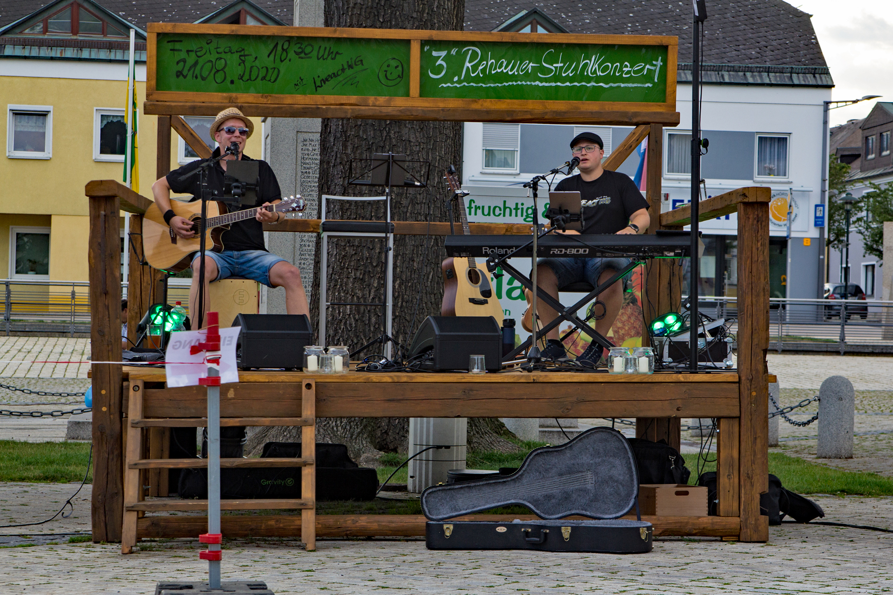 Ein paar alte Songs von früher, aus unserer Anfangszeit als „Lagerfeuer-Gitaristen“ mussten es sein, aber auch neuere Nummern mit ordentlich Groove von Megan Trainor, Colbie Cailat, Coldplay oder den Sportfreunden Stiller sollten es sein. Auch Topklasiker von Udo Jürgens oder Tom Petty haben wir kurzerhand „akustifiziert“ und so in 6 Wochen, ein richtig schönes 2,5 Stunden Konzertprogramm auf die Beine gestellt. Die Suche nach Auftrittsmöglichkeiten sind/waren echt schwer, umso geiler das es dann mit den Rehauer Stuhlkonzerten endlich geklappt hatte.