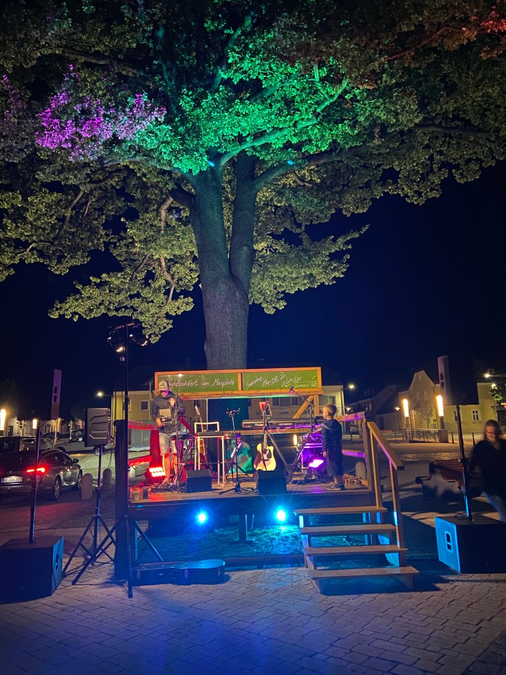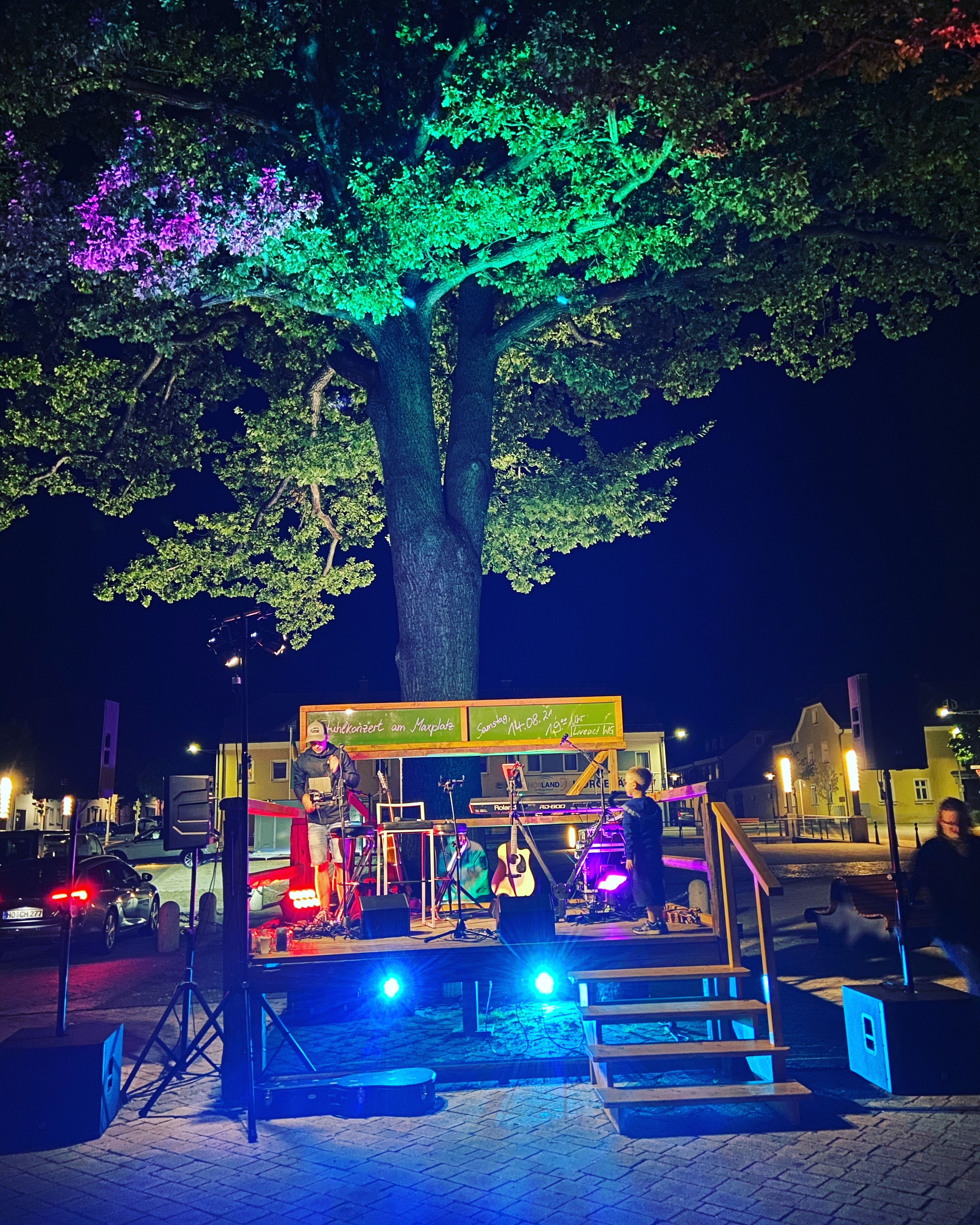 Punkt 16:30 Uhr trafen wir uns zum Aufbau und zum Soundcheck auf der perfekt vorbereiteten Bühne am Maxplatz in Rehau. Matze, der Verlobte von Laura half routiniert und voller Tatendrang beim aufbauen und beim verkabeln des Equipments. An dieser Stelle ein herzlicher Dank dafür 😁👏.