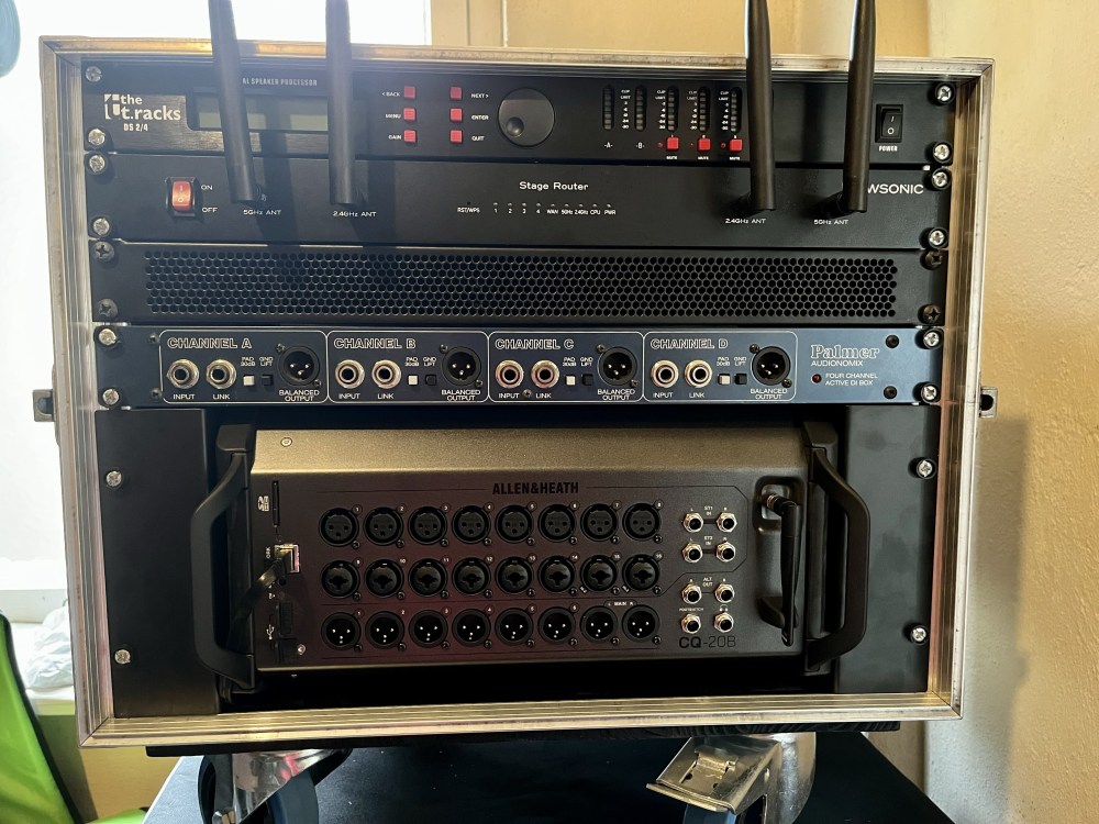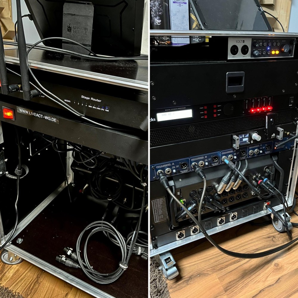 Natürlich muss ein solch hochwertiges Gerät auch ordentlich geschützt werden, weshalb wir es mit den optional erhältlichen Rack-Mounts ordentlich in unserem Live-Rack verbaut haben – angesteuert wird das Mischpult so auch über unseren stabiles WIFI mittles des Nowsonic Stagerouter 📡