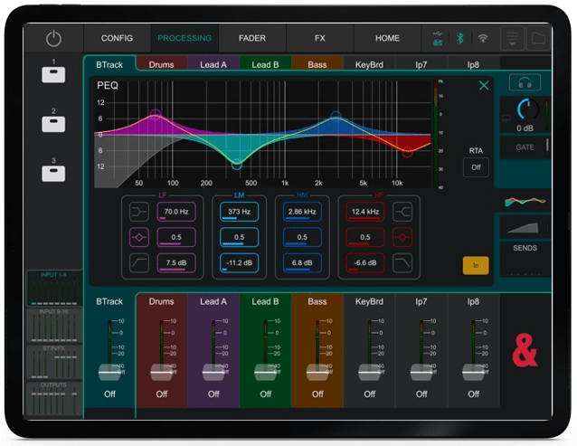 Ein 16 Kanaliger Feedback Assistent überwacht live absolut präzise und schnell das Frequenzbild ob sich irgendwo ein unschönes Feedback über eine Rückkopplung eines Mikrofones entwickeln könnte und steuert automatisch gegen. Ist die „Gefahr“ eines Pfeifens vorüber wird die Absenkung der störenden Frequenz automatisch wieder zurückgefahren und greift so nicht tief in den Gesamtsound ein. Dieses Feature ist absolut Gold wert wenn es mal ein bisschen lauter zugehen soll und spart uns zukünftig so viel manuelles Eingreifen.