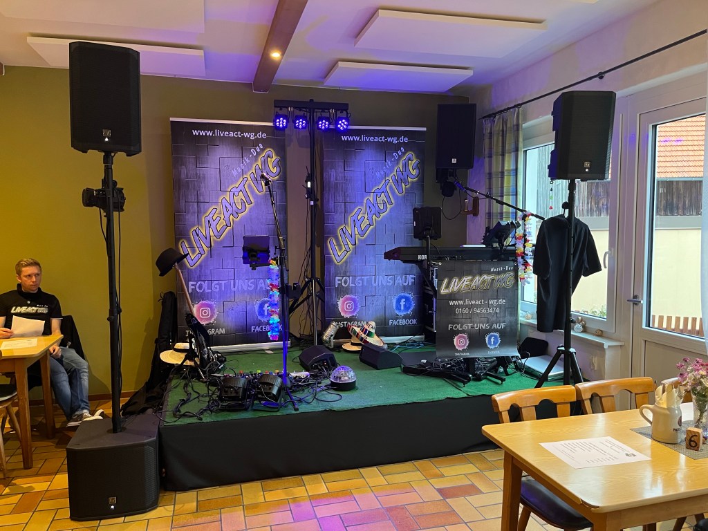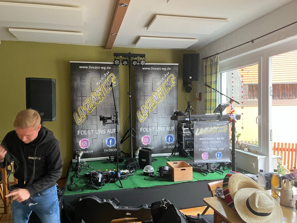 In diesem Jahr hat uns der Kerwazug nicht erwischt, und wir konnten direkt zum Schützenheim Witzleshofen durch zum Aufbauen. In altbewährter Weiße haben wir wieder die „kuschlige“ Bühne am gewohnten Platz vorgefunden und aufgebaut. Hier stand auch der erste große Livetest unseres neuen Digital-Mischpultes an (Beitrag siehe hier).