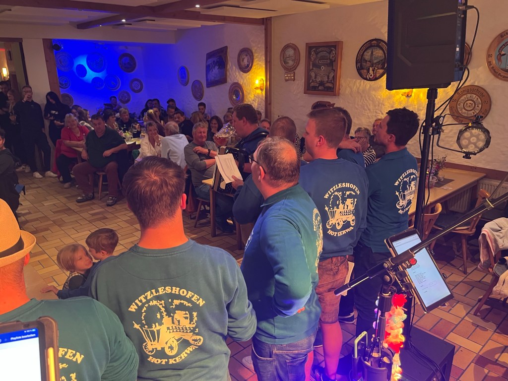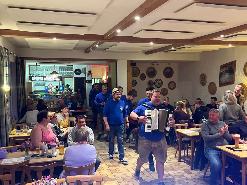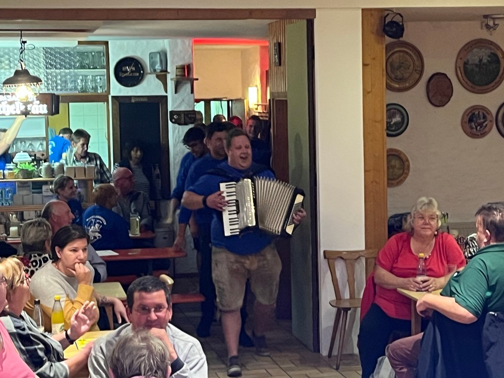 Nach einer schönen anfänglichen Tanzrunde folgte gleich das Highlight – Die Kerwaburschen gaben wieder ihre „Sprüchla“ musikalisch wieder – hier bekommt jeder herrlich sein Fett weg, wenn er unterm Jahr im Dorfleben irgendwas verzapft hat. Mittendrin Musikerkollege Dominik Bär, der die lustige Truppe mit seinem Akkordeon, Kreativität und Stimmgewalt anführt. Es war einfach wieder herrlich lustig zuzuhören 😂