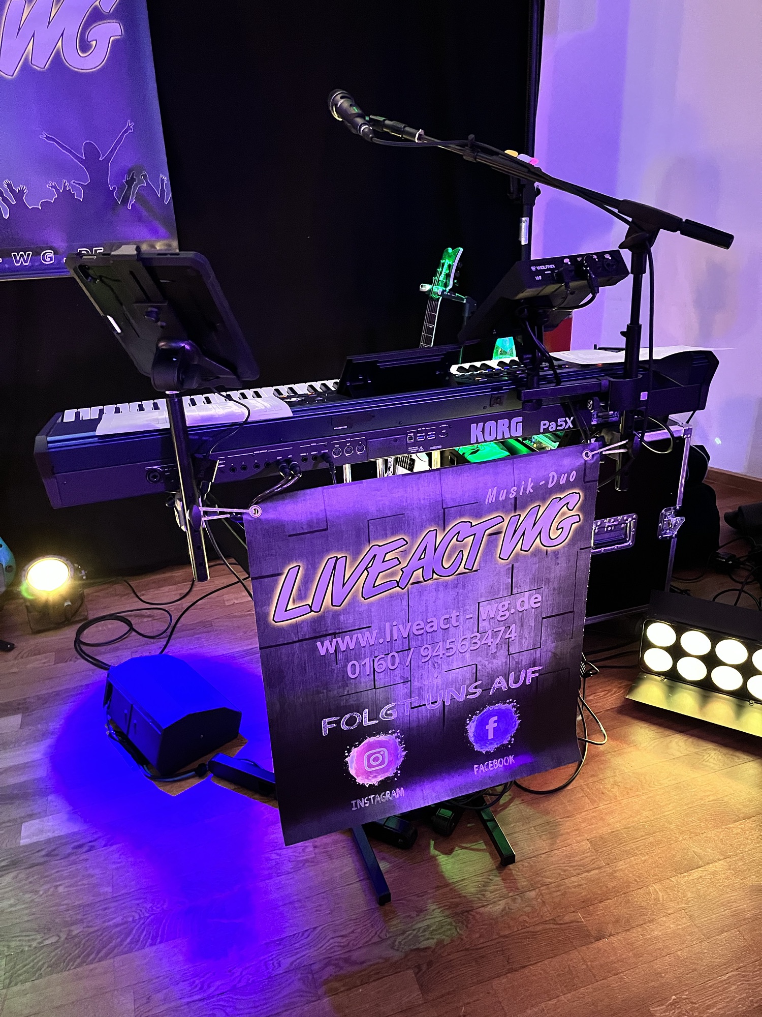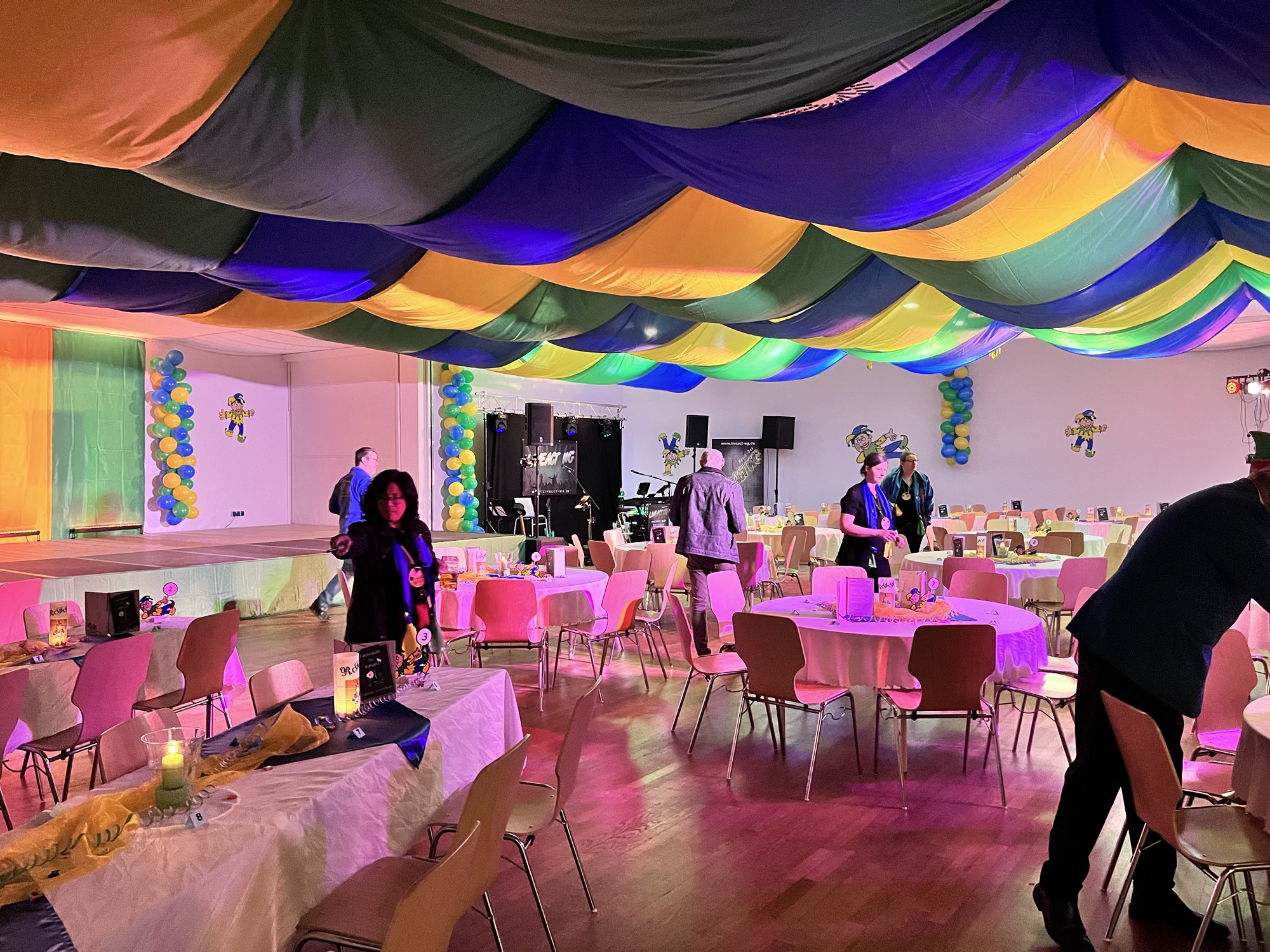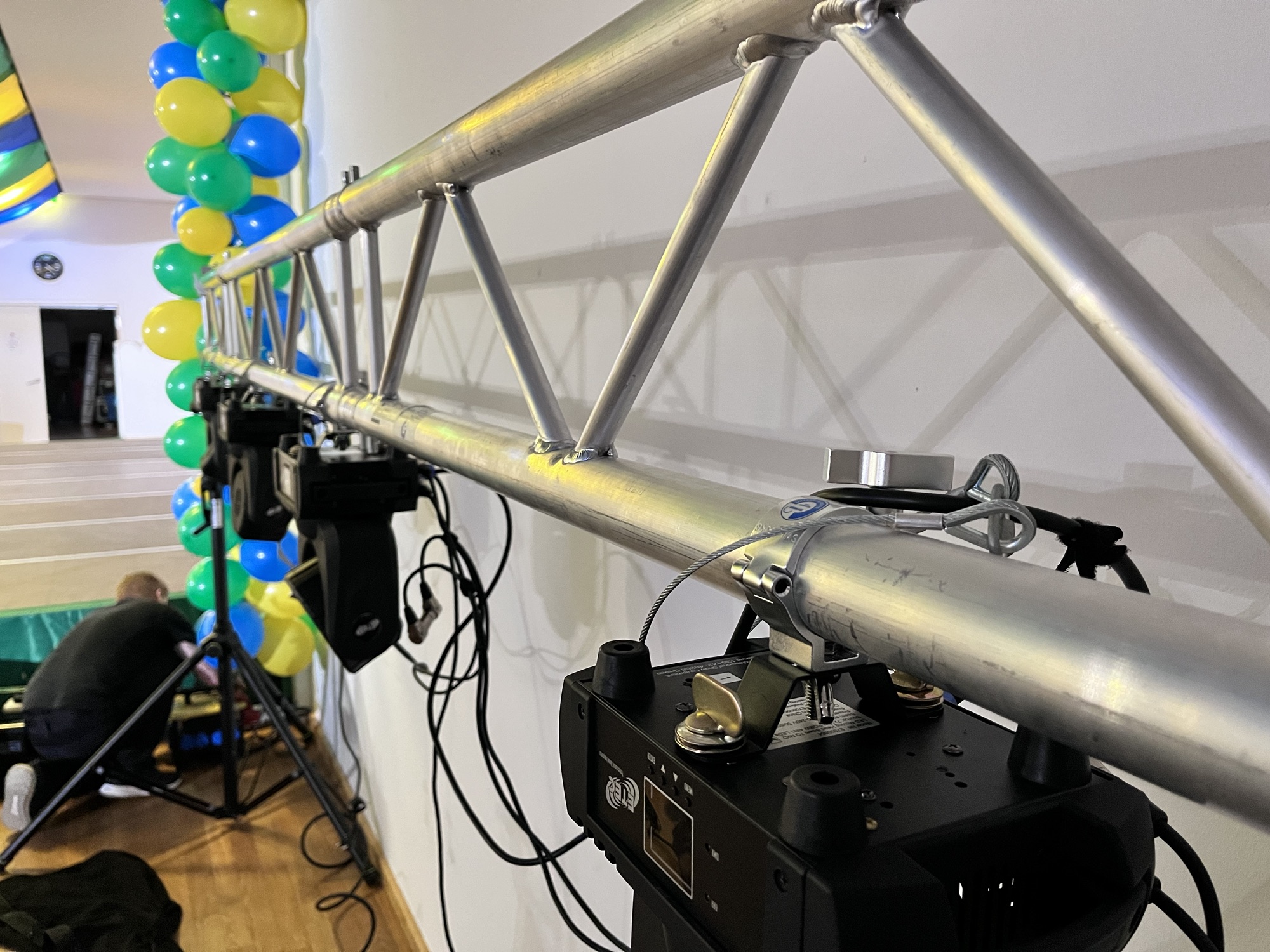 Unsere Lichttechnik haben wir perfekt, in den Vereinsfarben, und an die Saaldeko angepasst.