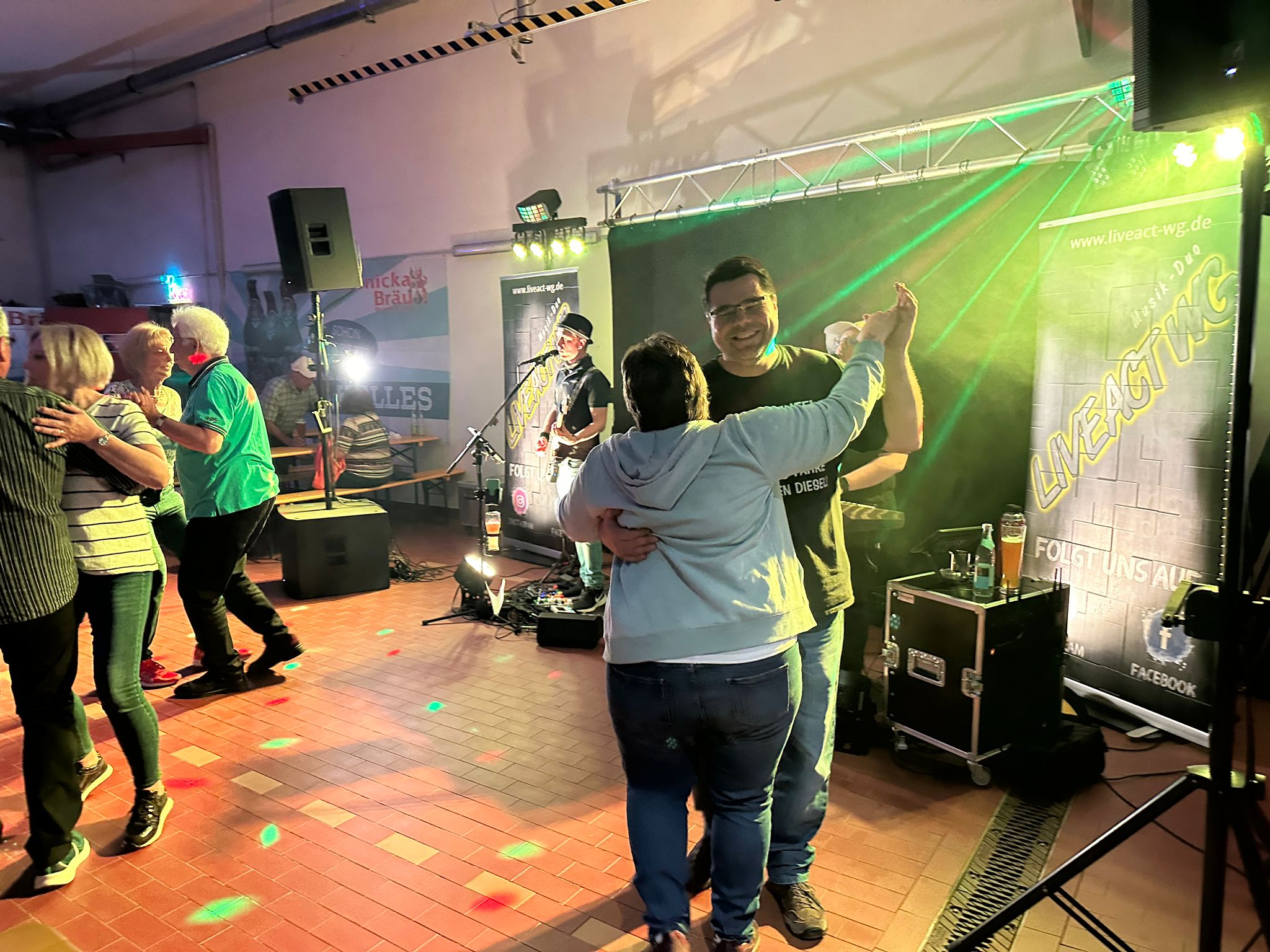 Nachdem der hiesige Spielmannszug gegen 18:30 Uhr einige Stück zum Besten gegeben hatte, ging es bei uns pünktlich um 19 Uhr los. Mit ein paar entspannten Evergreens sind wir in den stimmungsvollen Abend gestartet. Das erste mutige Tanzpaar musste auch nicht lange auf sich warten lassen! Denn 2 Freibier 🍻, die gerne von Alex ausgelobt werden, animierten sofort einige Tänzer die Tanzfläche zu eröffnen 💃🏻🕺🏻. Und so ging das dann den ganzen Abend durch. Egal ob zur XXL Discofox-Runde oder zur Partymusik – die Tanzfläche war immer gut gefüllt und die Leute haben super mitgefeiert.