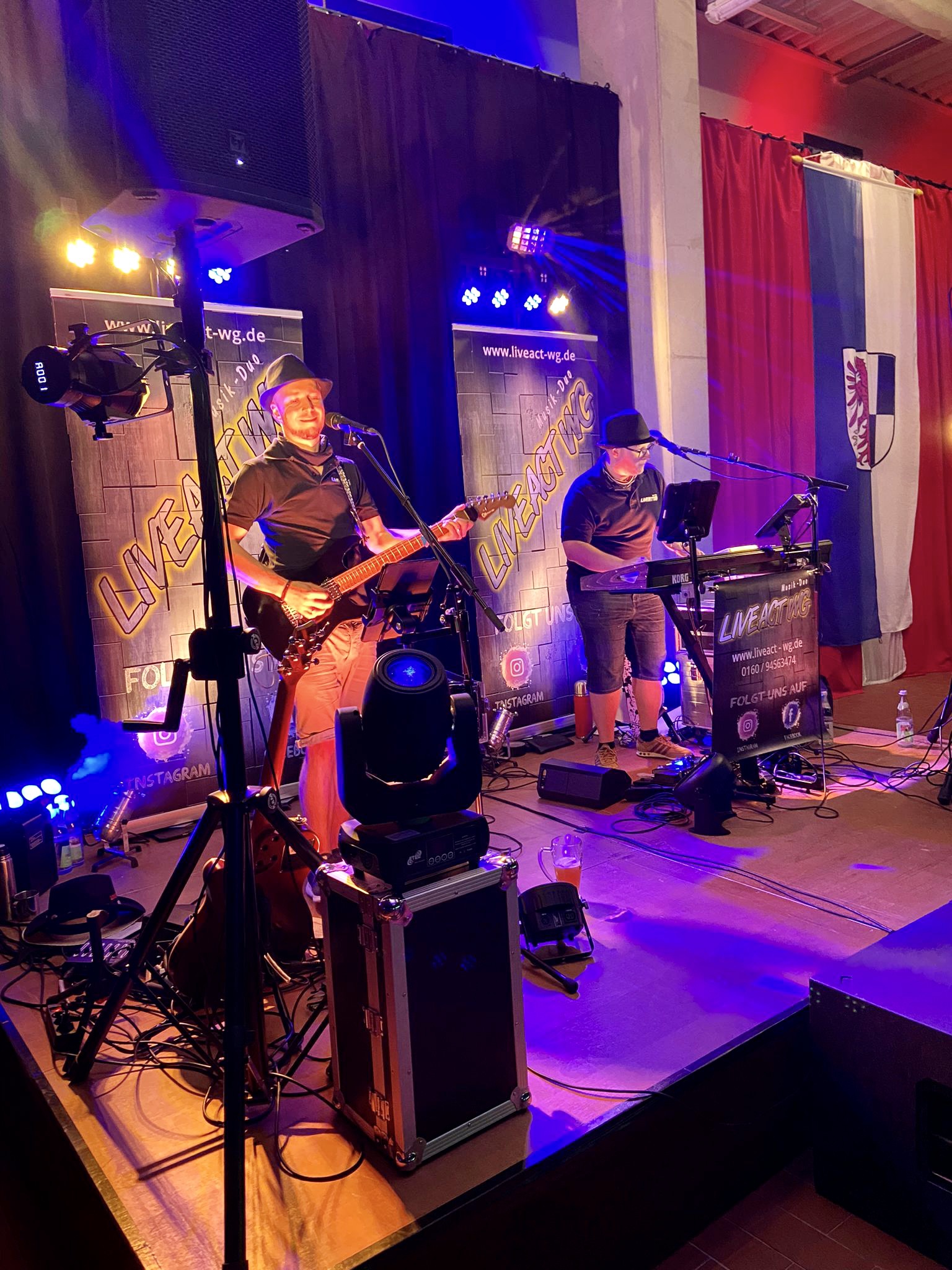 Bühne war uns ja auch noch aus dem letzten Jahr bekannt, und so ging der Aufbau und der Soundcheck leicht von der Hand. Um Punkt 19:00 Uhr ging es dann los bei uns mit der musikalischen Unterhaltung ☺🎶