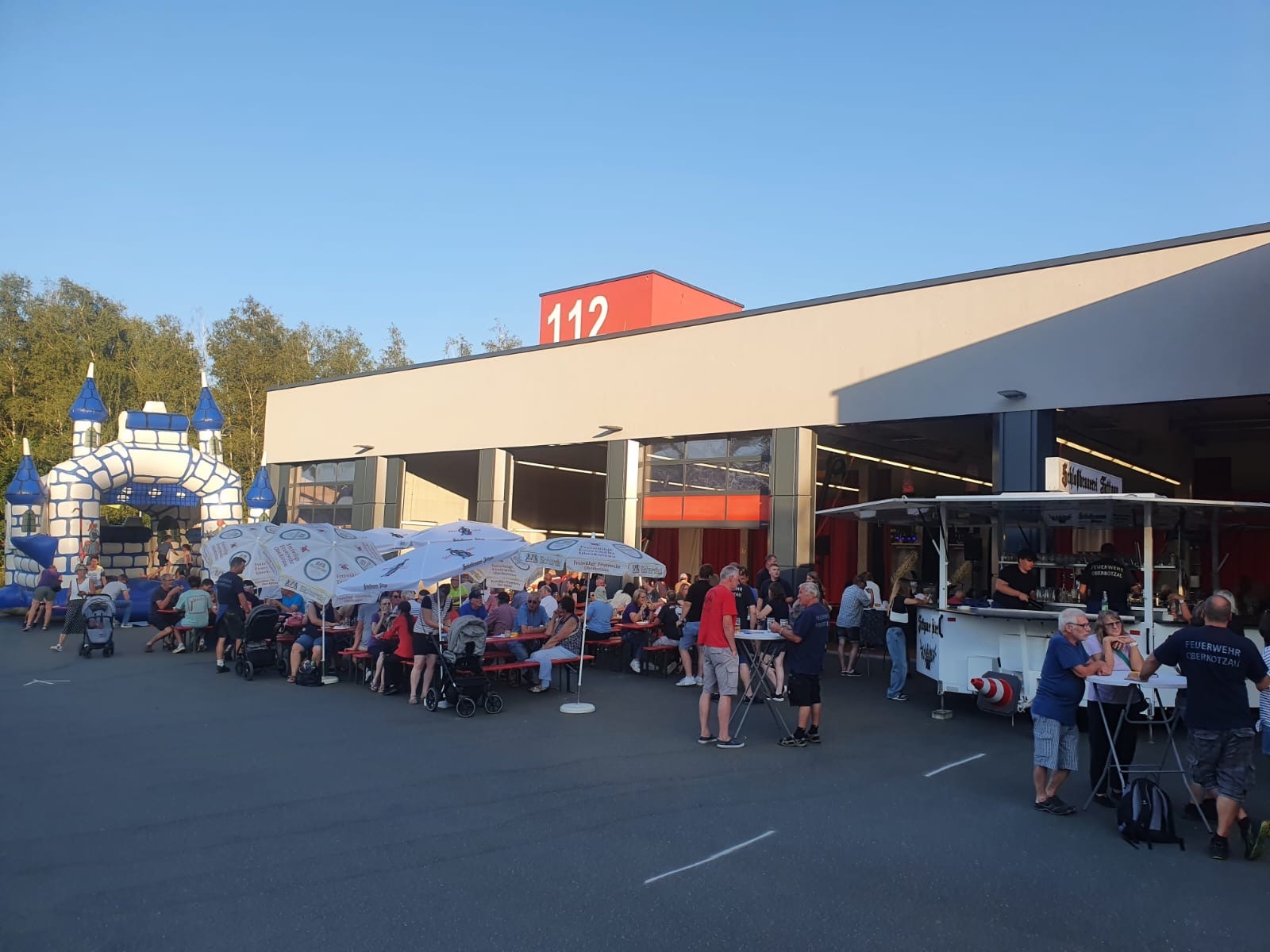 Das Fest war da aber schon im vollen Gange, denn es wurde schon am Nachmittag richtig viel geboten! Hüpfburg, Rundfahrten im Feuerwehrauto, Wasserspritzen und jede Menge Leckereien wie Kaffee & Kuchen, Crêpes und natürlich auch Bier und Herzhaftes Grillgut lockte schon am Nachmittag viele Leute und Familien an die Feuerwache.