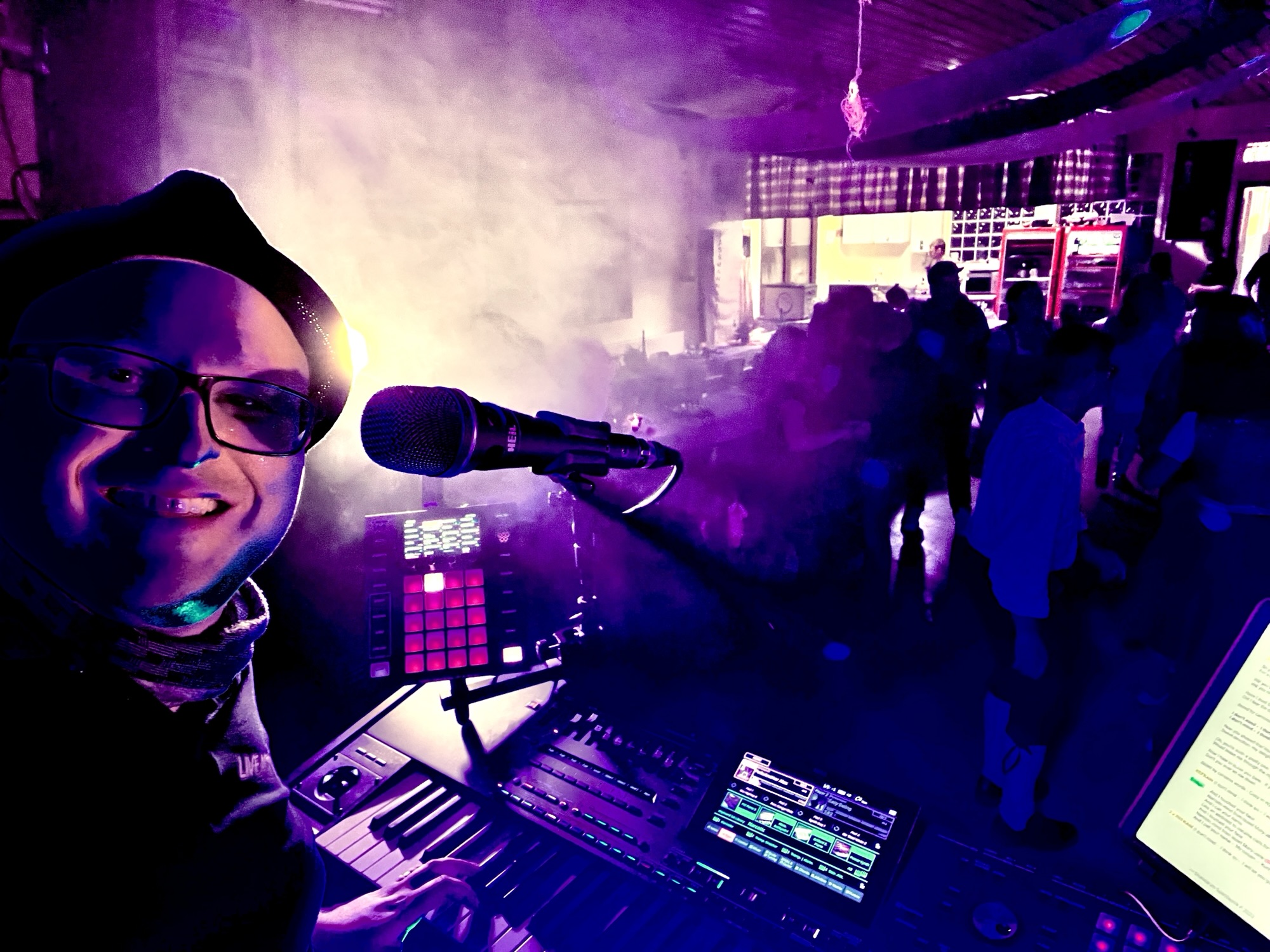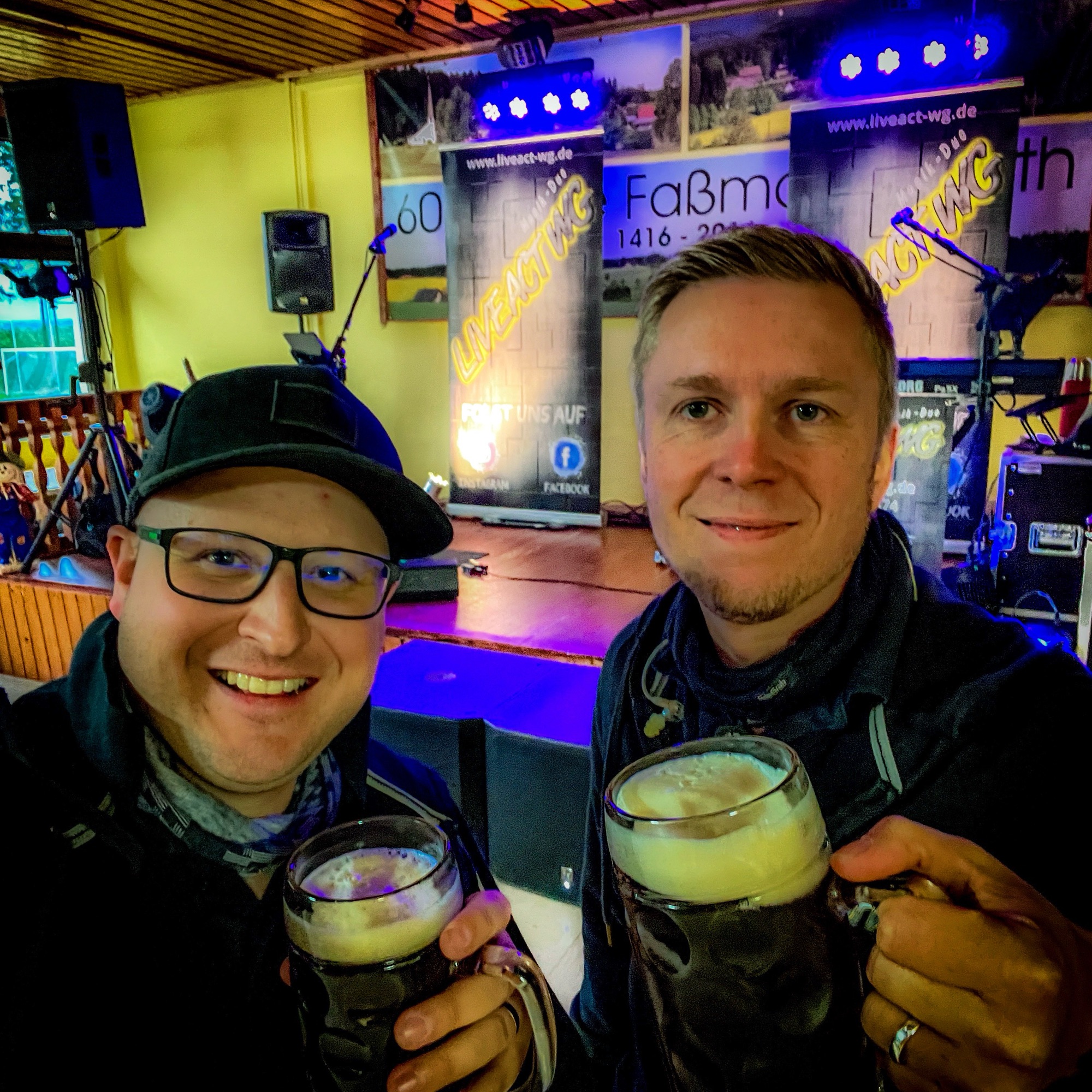 Alex war die Woche über so beschäftigt, unter anderem „musste“ er beruflich aufs Münchner Oktoberfest fahren um ein paar seiner mexikanischen Kunden zu bespaßen, so dass er mit unsortiertem Programm in Faßmannsreuth auflief… aber zum Glück war ja genug Zeit noch alles vor Veranstaltungsbeginn zu sortieren – diesen Schnappschuss von Conni wollen wir Euch nicht vorenthalten 😜😅🤓