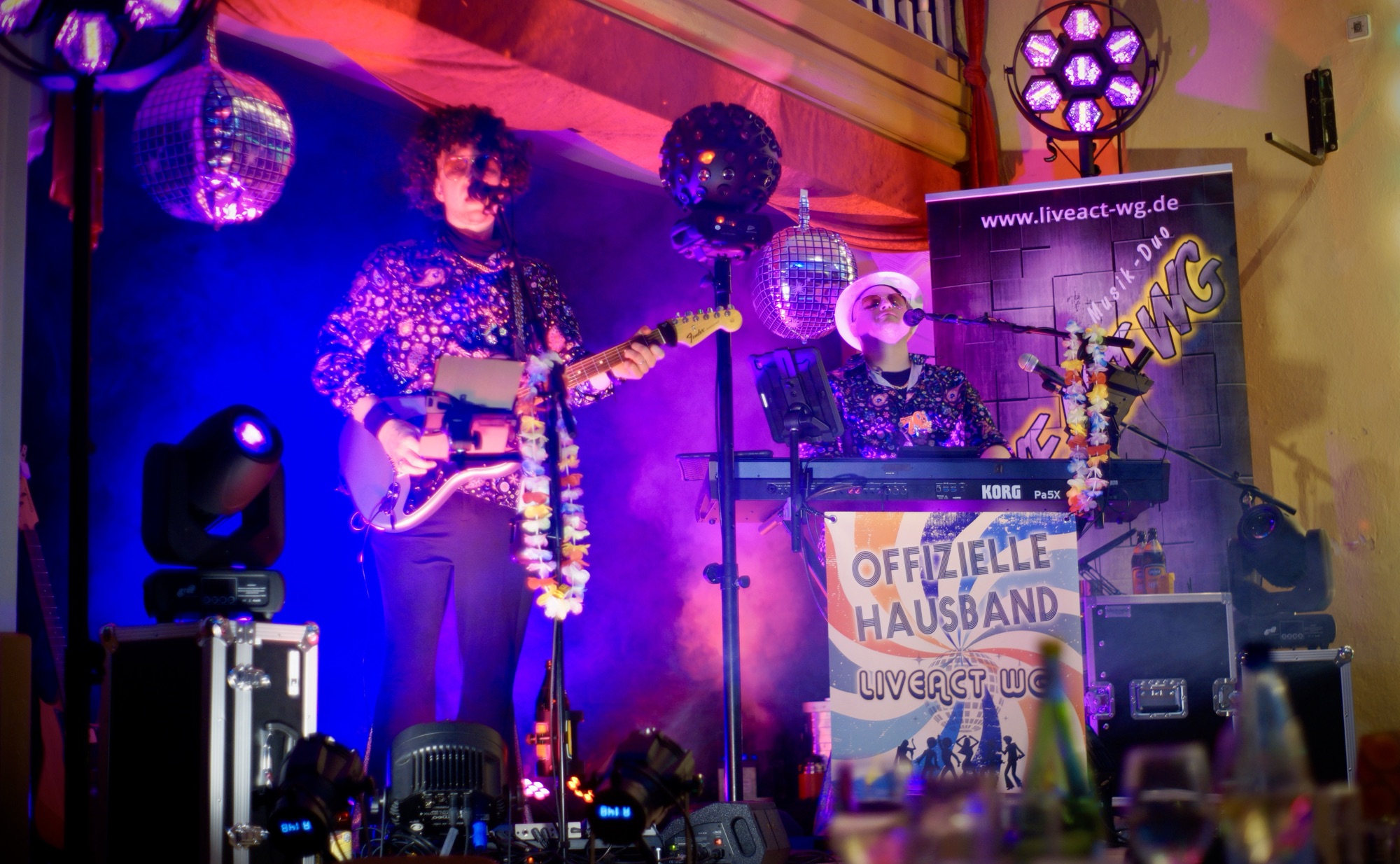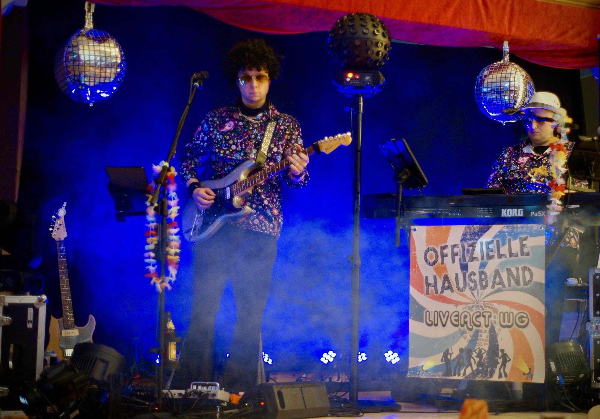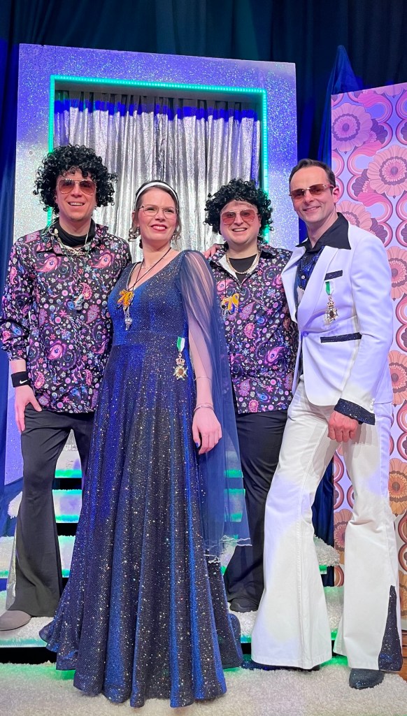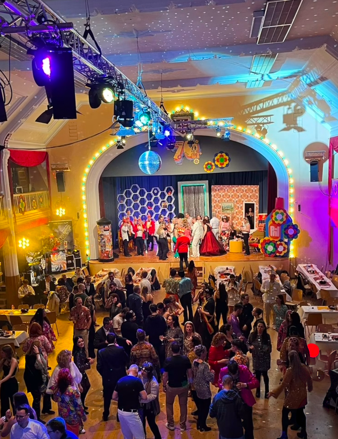 Und das Motto? Die 70er Jahre! Klar, dass wir uns entsprechend in Schale geworfen haben und auch im Programm noch ein paar neue Disco-Partysongs von Boney M oder den Bee Gees eingebaut haben!