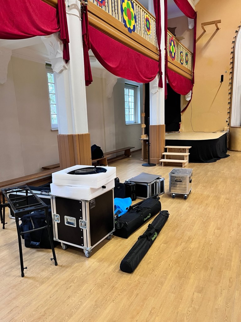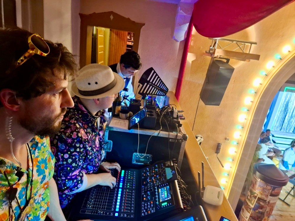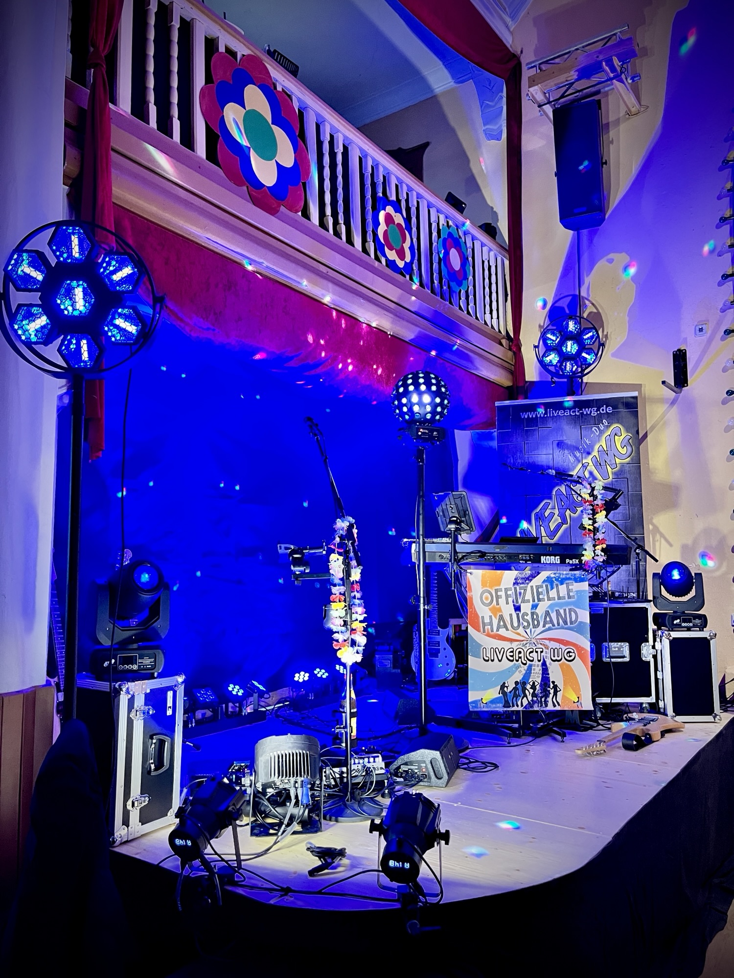 Nachdem der Soundcheck reibungslos lief, konnte sich Alex direkt an die Programmierung der Lichtshow machen. Neu im Gepäck: zwei richtig schicke Vintage-Scheinwerfer und – für die Discovibes – ein Spiegelkugeleffekt.