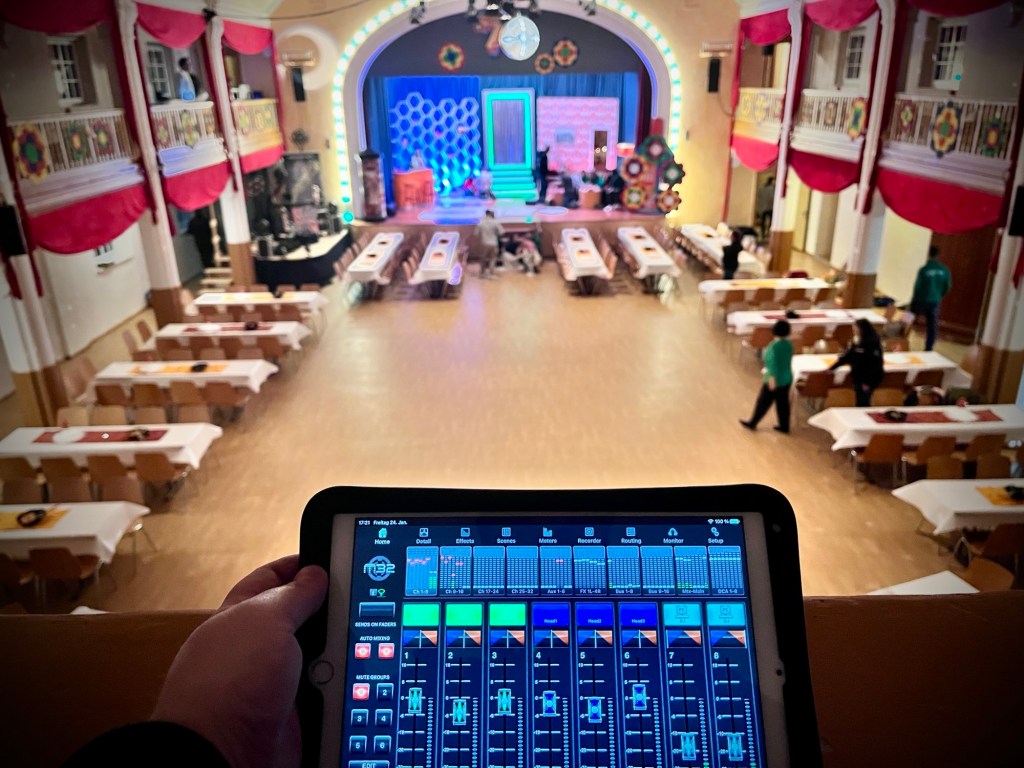 Schon am Freitag vor der ersten Prunksitzung ging’s los mit Aufbau und Soundcheck. Mit dabei: Max Steudel von Skyline Events, der die Fastnachtsfreunde und uns wieder mit seiner überragenden Ton- und Lichttechnik versorgt hat. Dieses Mal durften wir über die DB Technologies VIO X310 Topteile spielen – einfach der Hammer! Das hat richtig gefetzt 🥳