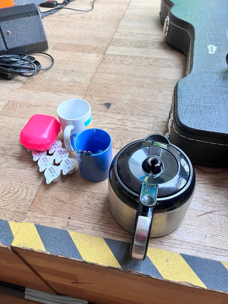 Der Aufbau und Soundcheck am Freitag liefen wie am Schnürchen – so konnten wir uns vor dem offiziellen Start um 20:00 Uhr noch mit einem leckeren Schnitzel stärken. Danke auch an Petra für die Kanne Kaffee ☕️😊