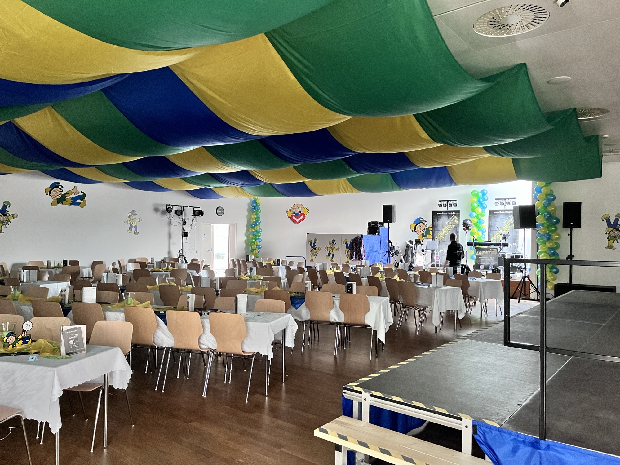 2024 wurde die Bühne der Fastnachtsfreunde wortwörtlich kaputtgetanzt. Doch der Verein ließ sich nicht lumpen: Dank Spenden wurde eine neue, professionelle Bühne angeschafft – größer, stabiler und nun sogar härtestem Männerballett erprobt. 😆