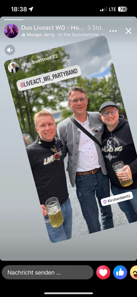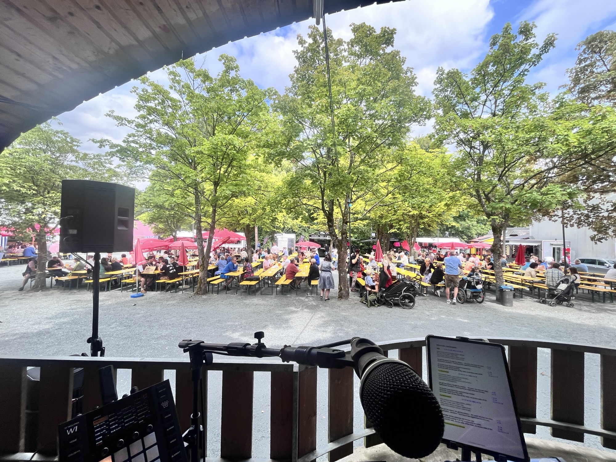 Am 13.07. durften wir wieder im richtig tollen Biergarten auftreten, der bis auf den letzten Platz besetzt war. Die Bühne war wieder der gemütlicher Musikpavillon – perfekt für einen entspannten Gig am herrlichsten Sonntagnachmittag.